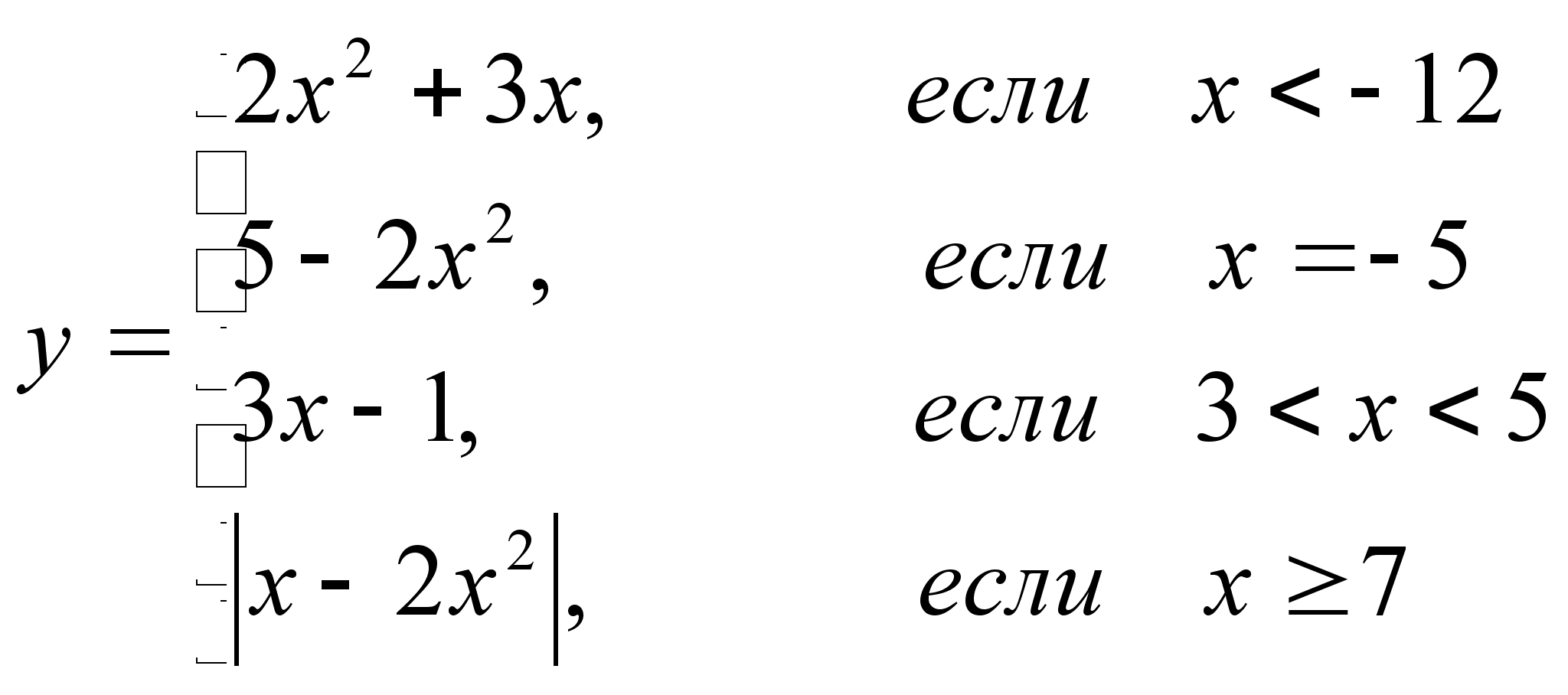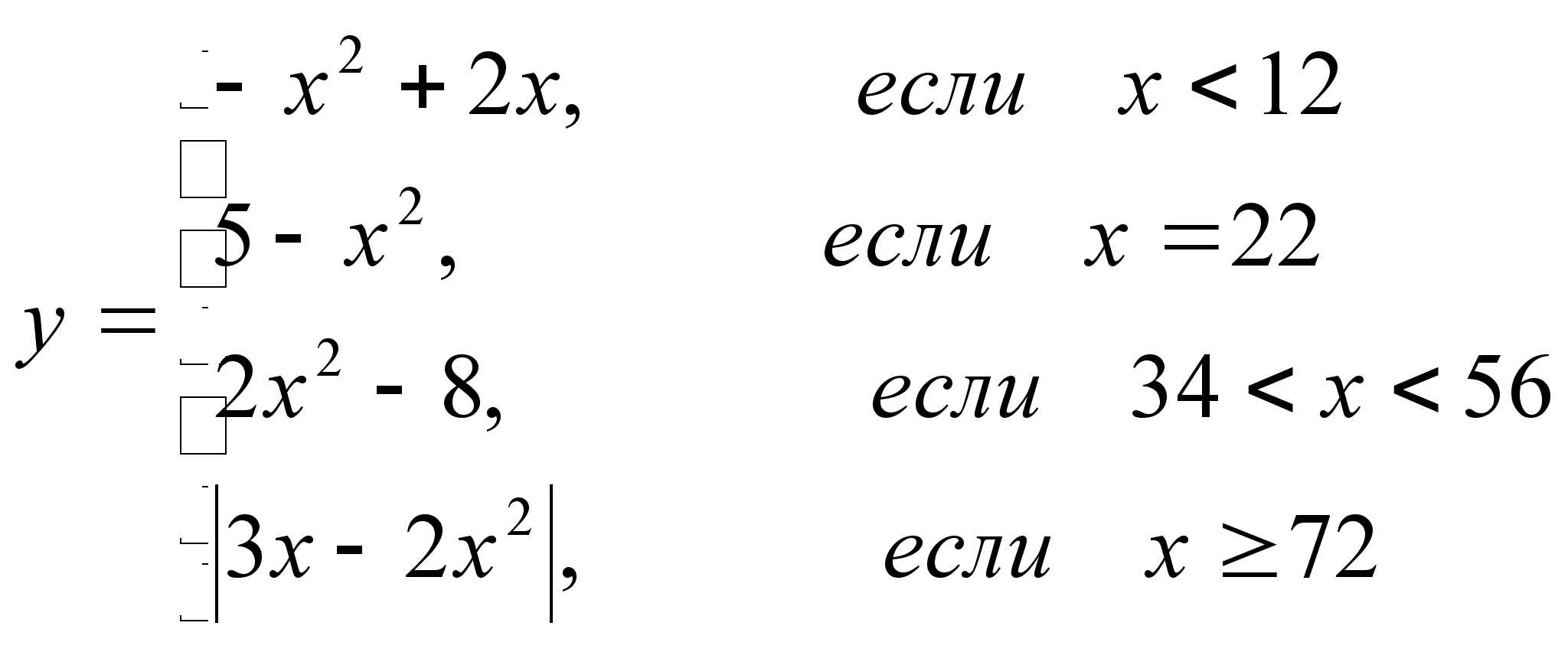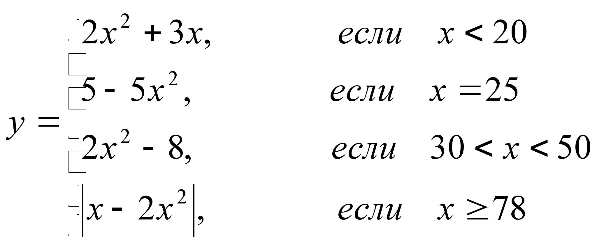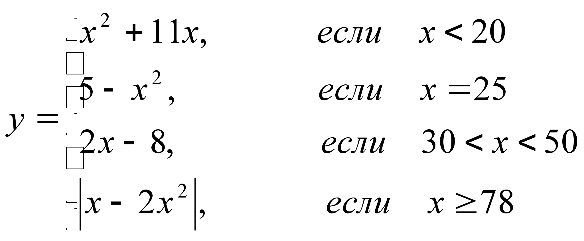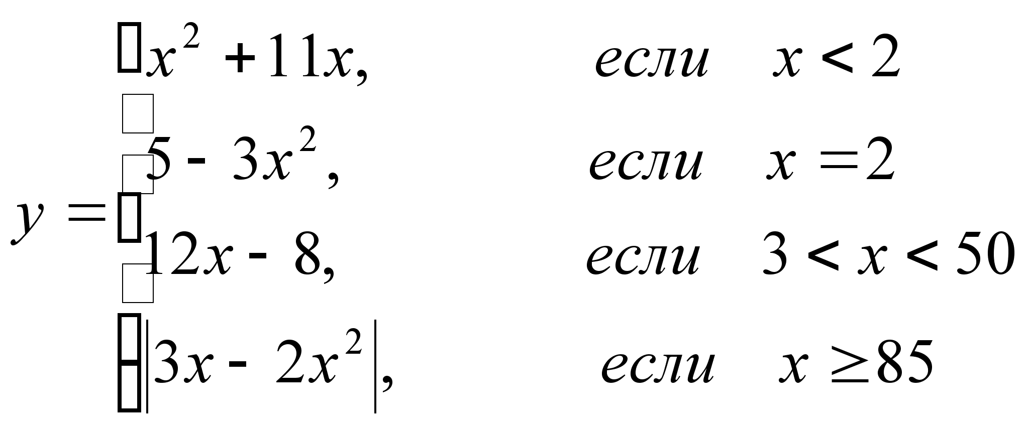 3. Обеспечить форматный ввод переменной x и форматный вывод значения функции y, используя оператор ветвления case. Функция имеет вид: