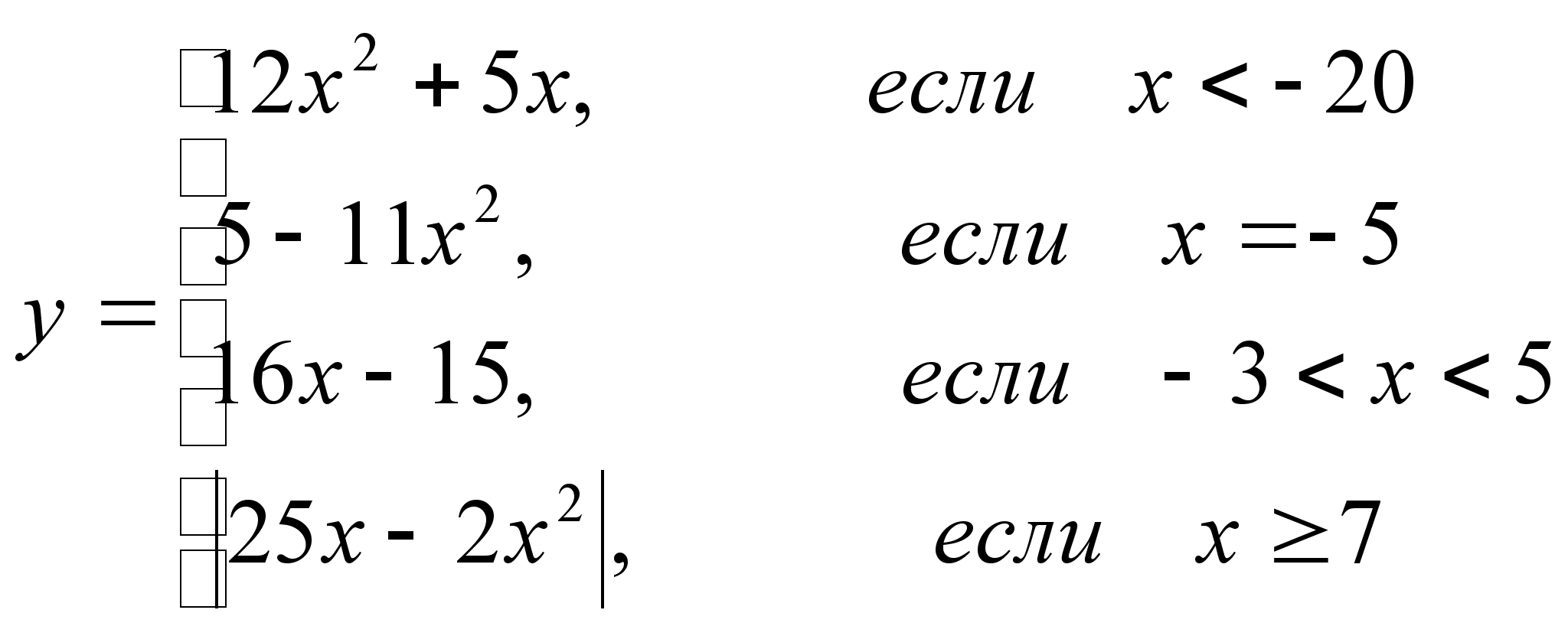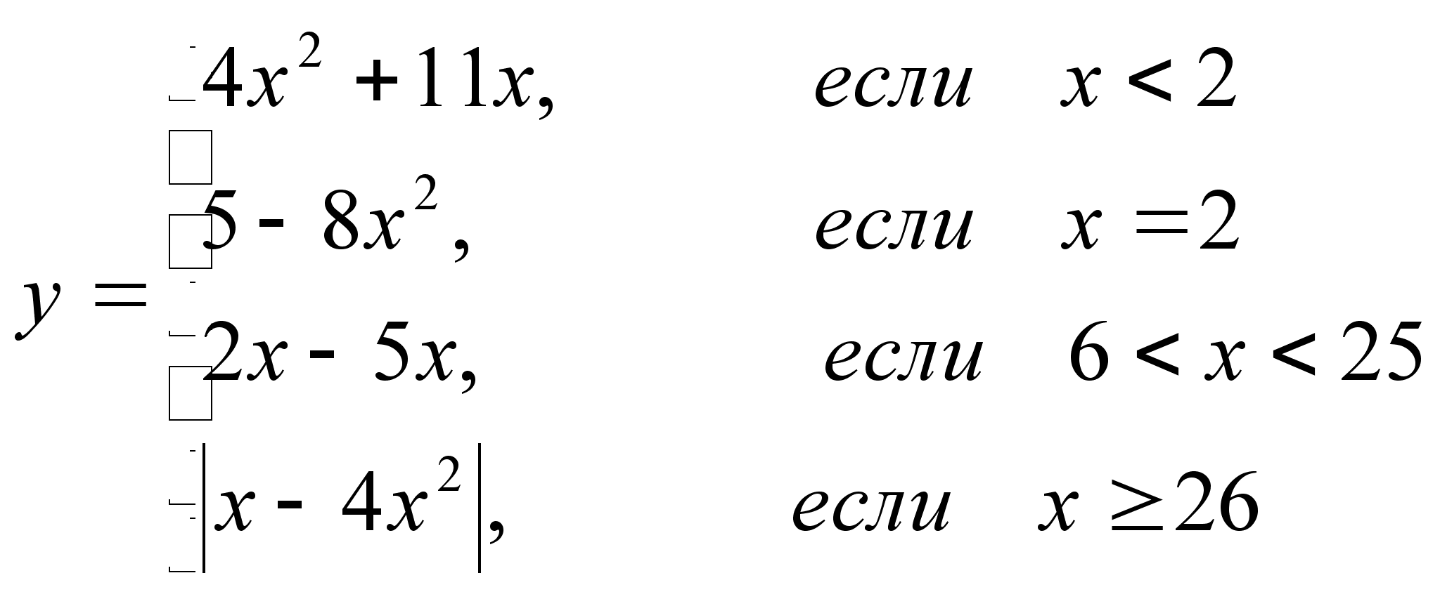 5. Обеспечить форматный ввод переменной x и форматный вывод значения функции y, используя оператор ветвления case. Функция имеет вид: