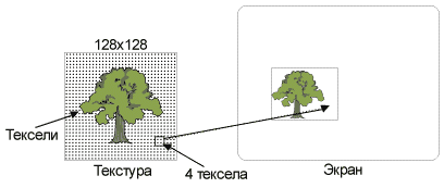 Текстурирование – основной метод моделирования поверхностей. Текстура – изображение, накладываемое на поверхность. Использование текстур требует гораздо меньше ресурсов, нежели моделирование поверхности с помощью полигонов. Текстуры хранятся в текстурной памяти, отдельные тексели (точки текстуры) используются для покрытия текстурой пикселей перед записью во фрейм-буфер. В зависимости от конкретного метода текстурирования, разное число текселей требуется для обработки одного пиксела.