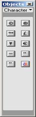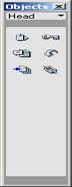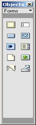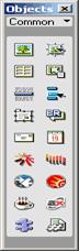 - панель объектов содержит кнопки для создания и вставки различных типов объектов, изображений, таблиц, слоев, фреймов. Можно также переключать между стандартным различными видами представления документов.