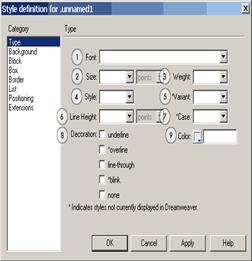1. Указываем шрифт, которым будет писаться текст. Мы можем либо указать конкретный шрифт, хоть FreeSet, но нет шансов, что он есть у пользователя на компьютере (а раз его нет - отображаться страничка будет не так). Так что рекомендуется пользоваться конструкциями, предлагаемыми самим DreamWeaver - например, Verdana, Arial, Helvetica, sans-serif. В этом случае сначала будет искаться шрифт Verdana – если такого не нашли, тогда Arial, если его нет? Тогда Helvetica, ну а если и ее нет - тогда любой шрифт без засечек - гротеск.