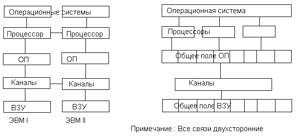 Классификация систем по режиму обслуживания. Режим индивидуального пользования. Машина предоставляется полностью в распоряжение пользователя, по крайней мере, на время решения его задачи. Пользователь имеет непосредственный доступ к машине и имеет право осуществлять операции ввода вывода. Режим пакетной обработки. Пользователь не имеет непосредственного доступа к ВС, подготовленные им программы передаются персоналу, обслуживающему систему, и затем накапливаются во внешней памяти. Система по расписанию выполняет накопленный пакет программ. Режим коллективного пользования или многопользовательский режим. Форма обслуживания, при которой возможен доступ нескольких пользователей к вычислительным ресурсам мощной ВС. Каждому пользователю предоставлен терминал, с помощью которого он устанавливает связь с системой коллективного пользования. Системы коллективного использования с квантованным обслуживанием называются системами с разделением времени. По количеству процессоров (машин) в ВС, определяющему возможность параллельной обработки программ, Вс делятся на однопроцессорные (одномашинные), многомашинные и многопроцессорные. Многомашинные и многопроцессорные ВС создаются для повышения производительности и надежности вычислительных систем и комплексов. По особенностям территориального размещения и организации взаимодействия частей системы различают следующие типы ВС. Сосредоточенные ВС. В них весь комплекс оборудования, включая терминалы пользователя сосредоточен в одном месте и связь между отдельными машинами и устройствами обеспечивается, стандартными для системы внутренними интерфейсами. ВС с телеобработкой. В них отдельные источники и приемники информации, включая терминалы пользователя расположены на таком значительном расстоянии от вычислительных средств что связь их с центральными средствами ВС осуществляется по каналам связи. Вычислительные сети представляет собой территориально рассредоточенную многомашинную систему, состоящую из взаимодействующих ЭВМ, связанных между собой каналами передачи данных. ПО особенностям функционирования ВС во времени различают ВС работающие не в реальном масштабе времени и в реальном масштабе последние должны работать в темпе с процессом , информация о котором автоматически поступает в Вс и обрабатывается. Результаты должны получаться так быстро, чтобы можно было ими воспользоваться для воздействия на сам процесс.