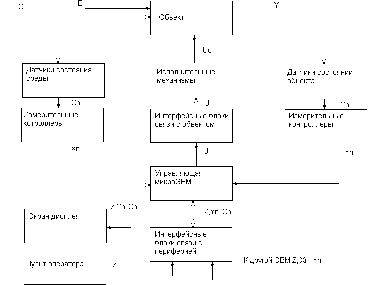 Развитие технологии и схемотехники БИС привело к появлению в середине 70 – х годов нового типа интегрального электронного прибора, представляющего собой функционально законченное устройство обработки цифровой информации, управляемое хранимой в памяти программой и конструктивно выполненного в виде одного или нескольких БИС и СБИС. Такой прибор получил название микропроцессора, так как по своим логическим функциям и структуре напоминает упрощенный вариант процессора обычных ЭВМ, а именно дешифрация и выполнения команд микропрограммы, организация обращения к оперативной памяти, в нужных случаях инициирование работы каналов и периферийных устройств, восприятие и обработка запросов, поступающих из устройств машины и внешней среды. По выполняемым функциям микропроцессор является центральной частью объекта, управляющим взаимодействием ее устройств. Отличия от процессора можно сформулировать следующим образом: - меньшая разрядность обрабатываемых данных, меньшая точность вычислений;