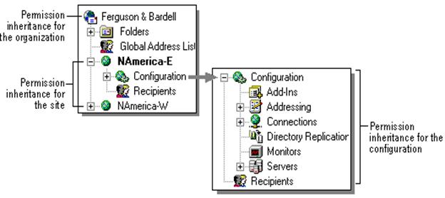 В Exchange Server используется следующая схема наследования прав (рисунок 1):