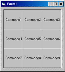 На форме уже имеется картинка PictureBox и девять равновеликих кнопок CommandButton . Имена объектов не изменены, а в картинку загружена фотография.
