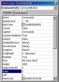 Измените свойство Index у кнопки Command 1 на 0. У кнопки Command 2 имя на Command 1 , причём вам надо будет положительно ответить на предлагаемый вопрос среды разработки. Выполните последнее указание для всех других кнопок.