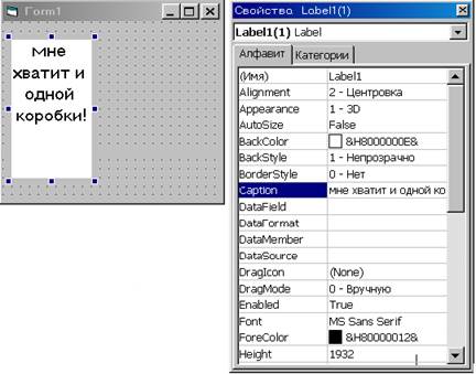 Представим данную программу в виде приложения! Для разнообразия, используем инструмент Label (метка). Разместим выбранный инструмент на форме ближе к левому краю. Ширина брошенной метки должна быть в десять-одиннадцать раз меньше ширины максимизированного окна. Свойство Index равно единице.