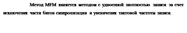Если бит данных равен единице, то стоящий перед ним бит синхронизации не записывается. Если бит данных равен нулю, но предыдущий бит данных равен единице, то бит синхронизации также не записывается.