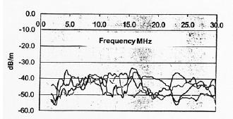 ¾ Излучаемое поле превышает допустимый для Германии и Британии уровень излучаемых полей (максимум вне кабеля 50дБ)