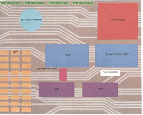 На системной плате имеются также порты для связи с устройствами ввода-вывода, а также микросхемы двух типов внутренней памяти: постоянного запоминающего устройства (ПЗУ), служащего лишь для считывания данных, или оперативного запоминающего устройства (ОЗУ), используемого как для считывания, так и для записи информации. (Эта память называется также запоминающим устройством с произвольной выборкой, ЗУПВ, но на практике чаще используется термин ОЗУ.) ПЗУ содержит инструкции, которые не подлежат изменению. ОЗУ хранит программы и данные только до тез пор, пока не отключается питание. Пользователь может свободно стирать и записывать данные в ОЗУ, но при отключении питания вся хранящаяся там информация пропадает.
