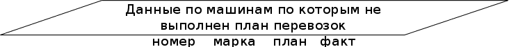 Задание. Данные по машинам автобазы: номер, марка, план перевозок, факт. Вывести данные по машинам, по которым не выполнен план перевозок.