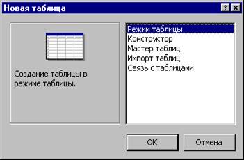 Независимо от метода, примененного для создания таблицы, всегда имеется возможность использовать режим конструктора для дальнейшего изменения макета таблицы, например для добавления новых полей, установки значений по умолчанию или для создания масок ввода.