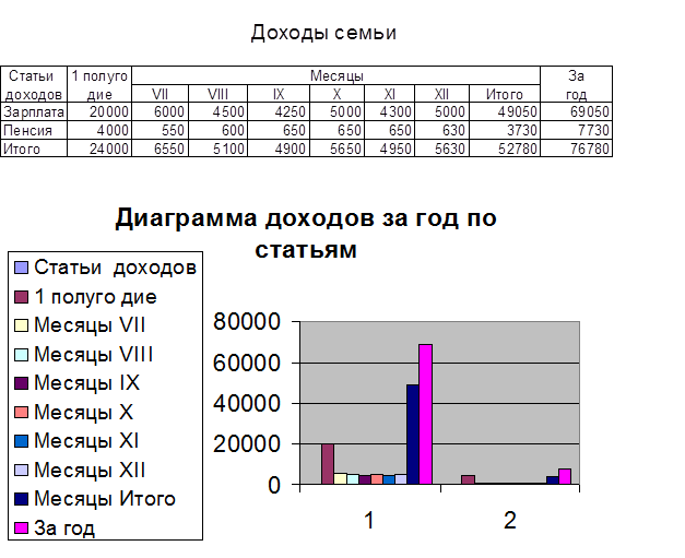 По результатам таблицы должна быть построена диаграмма, отражающая изменение помесячных доходов семьи.