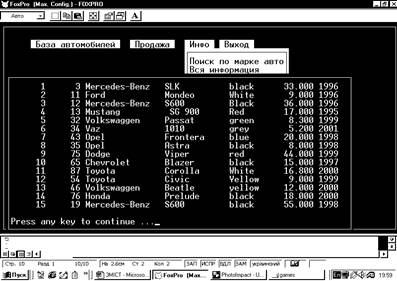 Моя програма не претендуе на звання повністю функціональної робочої системи, а лише описує деякі можливості СУБД .Завдання – показати наскільки зручно оперувати з даними у FoxPro.База даних має нескладний та зручний інтерфейс з яким легко працювати.Повний програмний код, алгоритм та опис процедур описаний у наступних розділах курсової роботи.