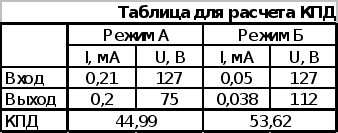Определили потребляемую (на входе) и полезную (на выходе) мощности стабилизатора: