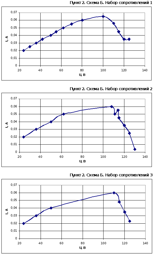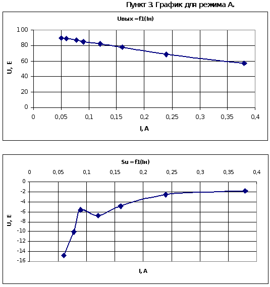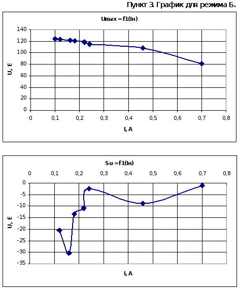 Сняли ВАХ работы стабилизатора для трех произвольно выбранных значений нагрузки в режимах А и Б.