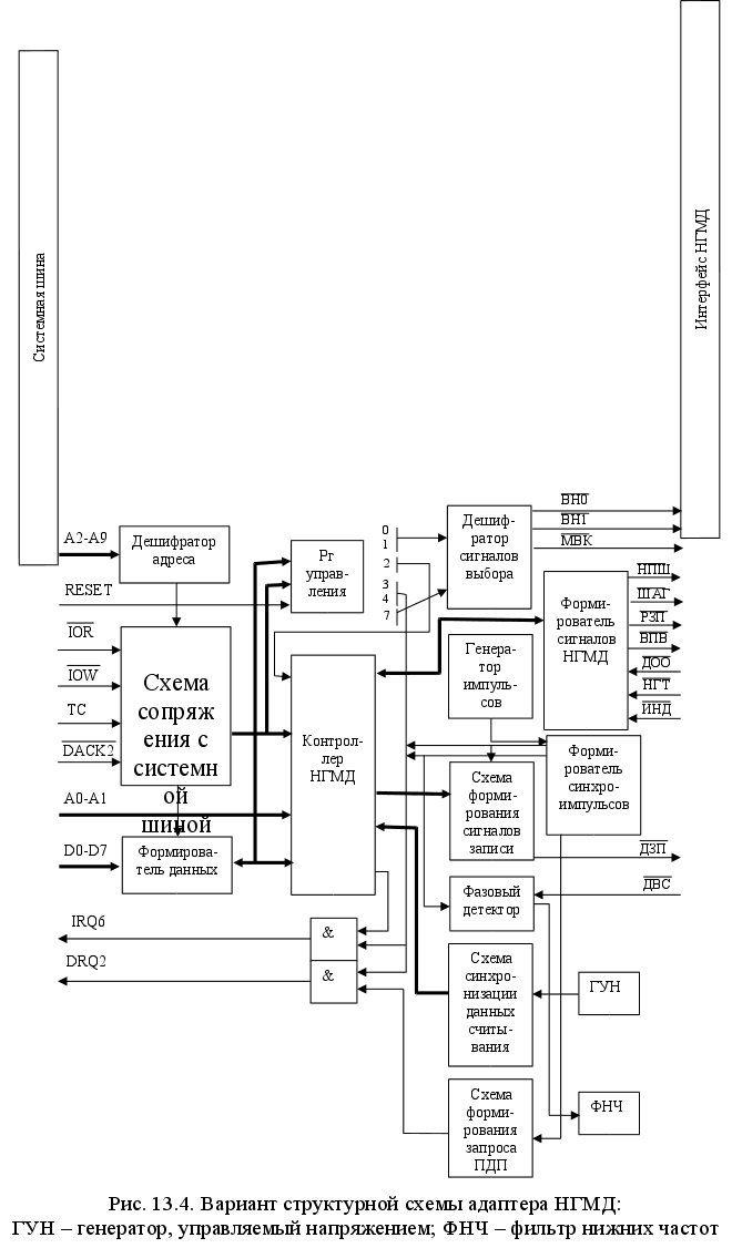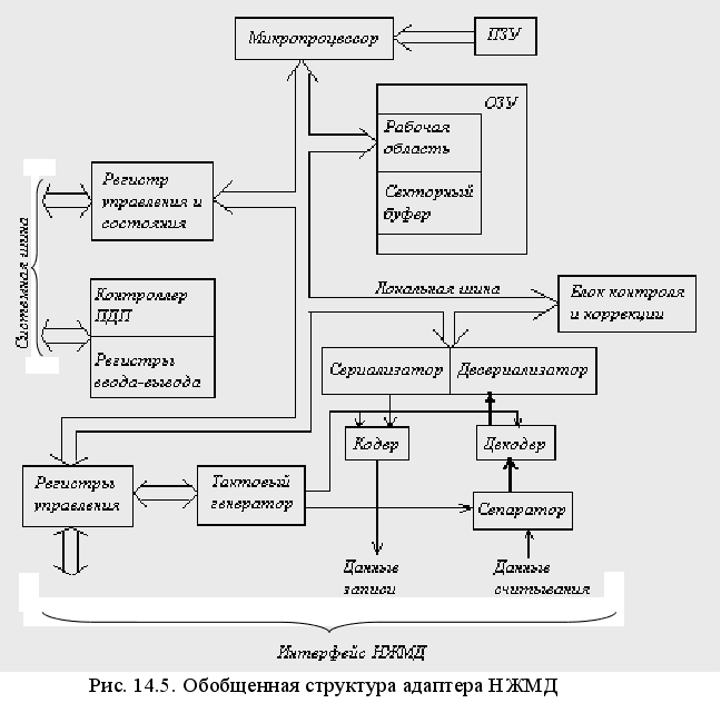 Контроллеры ВЗУ, как правило, размещаются в системном блоке ПЭВМ и реализуют функции контроля исправности ВЗУ, помехоустойчивого кодирования, обнаружения ошибок при считывании, задания формата данных, формирования сигналов интерфейса в соответствии с протоколом и др.
