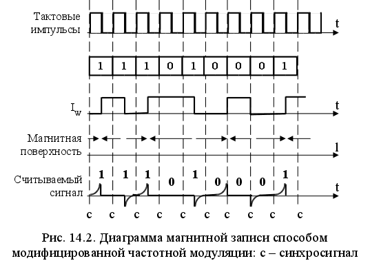 Способы записи устанавливают соответствие отпечатков на поверхности носителя значениям «0» и «1». Наиболее распространенными являются способы записи без возврата к нулю (БВН), частотной (ЧМ) и фазовой (ФМ) модуляции, группового кодирования (ГК). Трактом или каналом записи-воспроизведения называют совокупность аппаратных средств, позволяющих при операциях записи получать отпечатки и восстанавливать записанную кодовую последовательность при операциях чтения. При магнитной записи основными компонентами тракта являются головка записи и воспроизведения, усилители записи и воспроизведения, детекторы информационных и синхронизирующих сигналов, схемы управления.