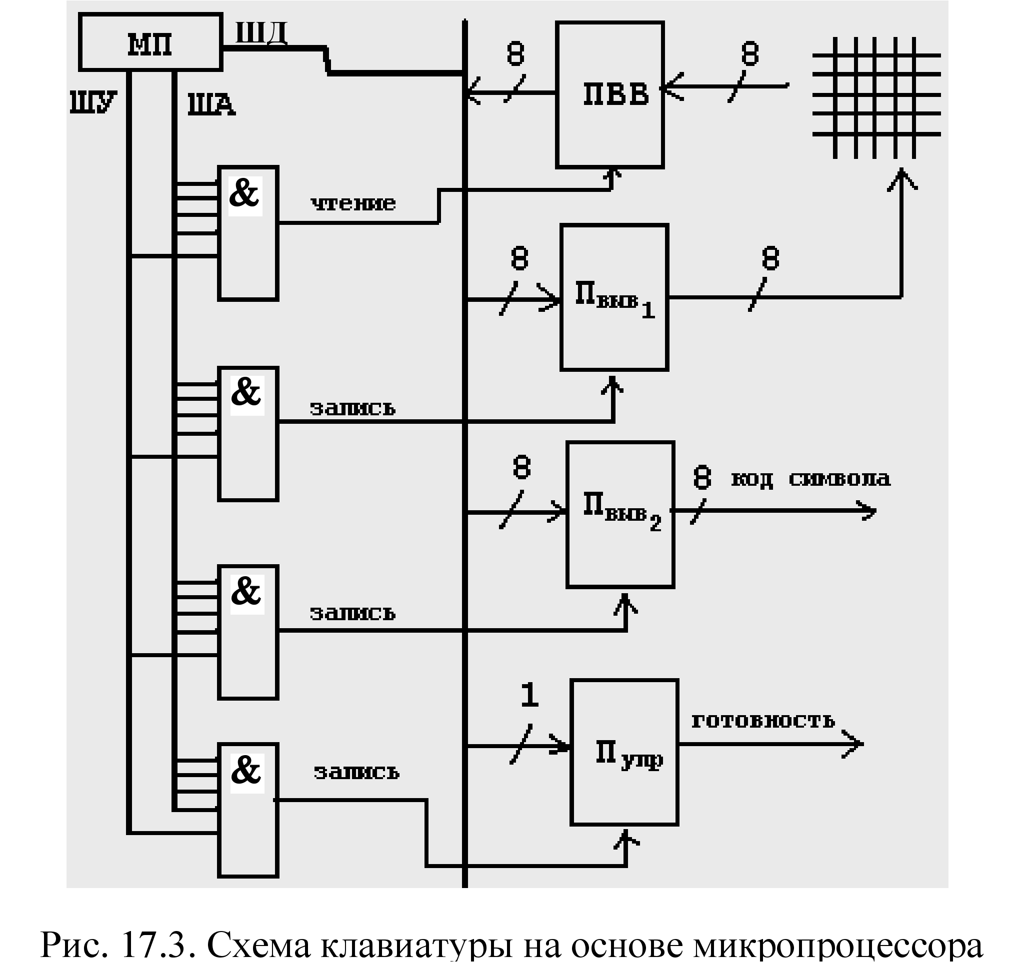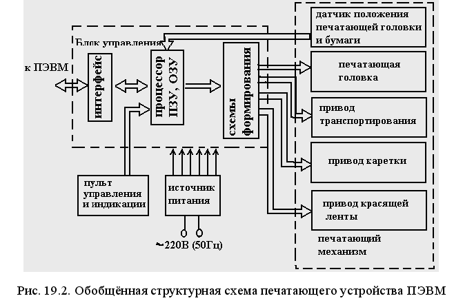 1. Нарисуйте функциональную схему блока управления любого печатающего устройства на основе известного Вам микроконтроллера с возможностью подключения печатающего устройства к магистральному порту (II вариант).