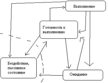 За время своего существования процесс может осуществить переход из одного состояния в другое. Это обусловлено обращениями к ОС с запросами ресурсов и выполнением системных функций, которые предоставляют ОС взаимодействие с другими процессами, появлением сигналов прерывания от таймера и устройств ввода/вывода. Процесс из состояния бездействия может перейти в состояние готовности в следующем случае: