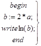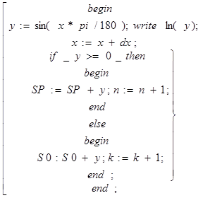 y: = a *sin (x); writeln (y, x); x: = x + 0.2 ;