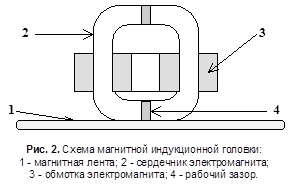 А при воспроизведении записи наблюдается процесс обратный записи: намаг-ниченная лента возбуждает в магнитной головке электрические сигналы, которые после усиления поступают дальше в динамик. (рис. 2)
