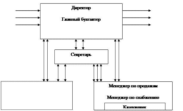 В штате предприятия помимо директора и главного бухгалтера имеются бухгалтер-кассир и бухгалтер по учету товаров, секретарь, два менеджера по продажам и снабжению, кладовщик. Таким образом, можно выделить два основных блока, нуждающихся в автоматизации – бухгалтерия и менеджерский отдел.