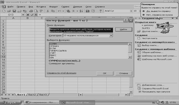 Как мы видим, возможности Excel 2002 очень велики и для их рассмотрения потребовалось бы много времени, но данная задача перед нами и не стоит: в этой работе мы обратим свое внимание на мастера функций, узнаем его назначение и порядок работы с ним.