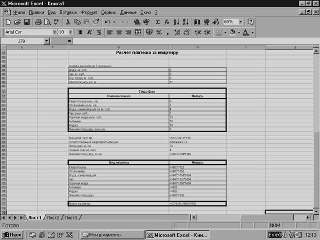Расчет квартплаты и отопления производился по формуле: Площадь* Тариф за кв.м.