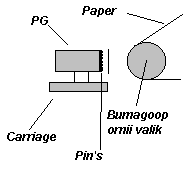Матричные принтеры - наиболее распространенный тип принтеров. В этом типе принтеров используется для печати печатающая головка(ПГ) , которая содержит одни или два ряда тонких игл. Головка устанавливается на ракетке и движется вдоль печатаемой строки. При этом иголки в нужный момент ударяют через красящую ленту по бумаге. Это обеспечивает формирование на бумаге символов и изображений. В дешевых моделях принтеров используются ПГ с 9 иглами. Качество печати в этих принтерах улучшается при печати информации не в один, а в два или четыре прохода ПГ вдоль печатаемой строки. Более качественная и быстрая печать обеспечивается 24-иголочными принтерами. Однако эти принтеры более дороги по сравнению с 9-иголочными,менее надежны и существуют определенные трудности при замене вышедших из строя ПГ.