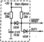 Реализована на элементах С14, R27, VD23, VD24, R28, ВВ5 порта ввода-вывода D6 (рис.3.25).