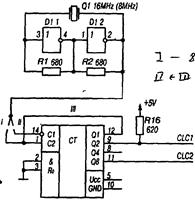1. Таймер (сигнал OUT2) программно-управляемая БИС (D5) для формирования стабильного по частоте звукового сигнала независимо от работы ЦП.