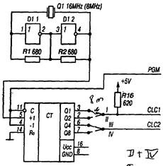 Обеспечивает тактовыми сигналами ЦП (4MHz) и работу таймера (1 MHz).