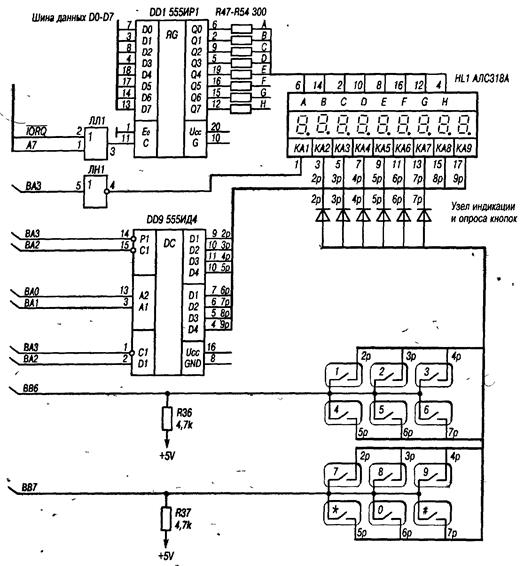 Узел индикации и опроса кнопок