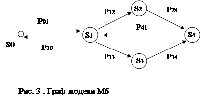 Модели ВС удобно представлять в виде направленных графов, в которых вершины графа соответствуют различным СМО, а направленные дуги – процессам перехода заявок из одной СМО в другую. Для модели М6 вышеописанный граф будет иметь вид представленный на рисунке 3.