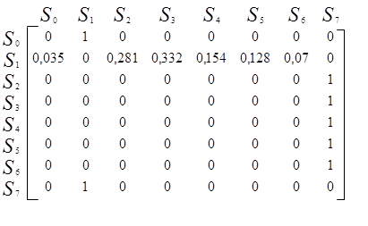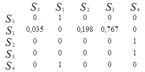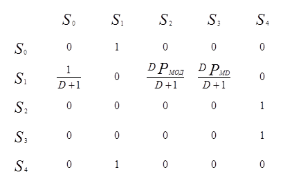 В соответствии с вышеизложенным, матрица вероятностей передач для данной модели будет выглядеть следующим образом: