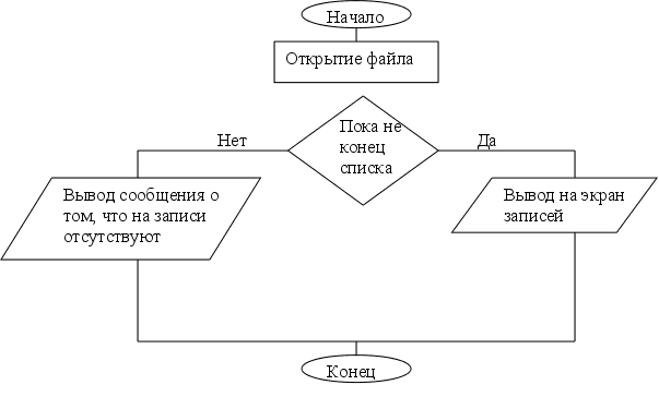 При выборе функции «Просмотреть», поверяется наличие данных в списке. Если данные отсутствуют, на дисплей выводится соответствующее сообщение; иначе выводится таблица, содержащая номер договора, производитель, название товара, количество данного товара, его цена и сумма.