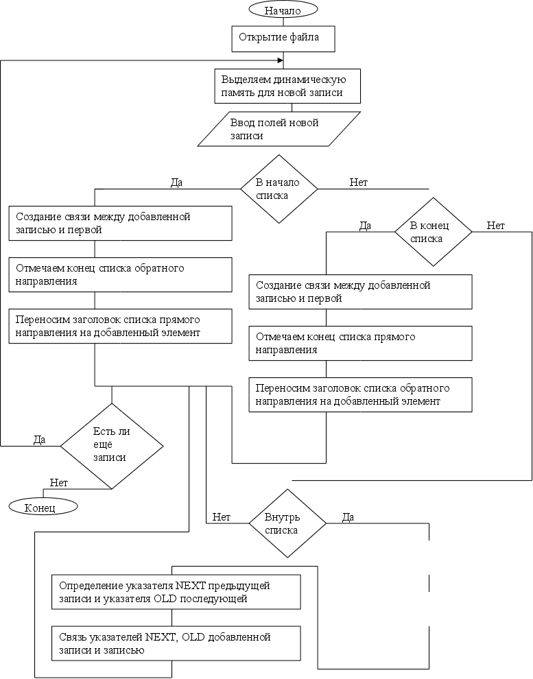 Процедура «Добавление» – можно дополнить двунаправленный список новыми данными.