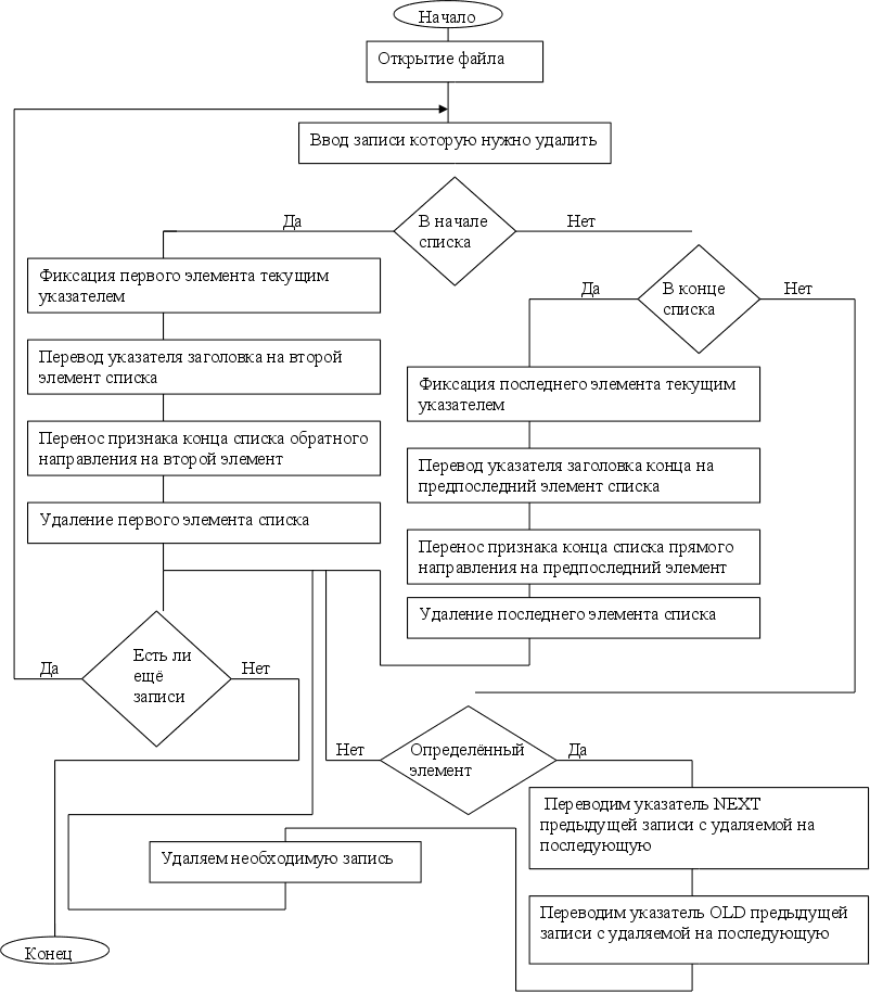 Процедура «Удаление» удаляет ненужные данные из списка.