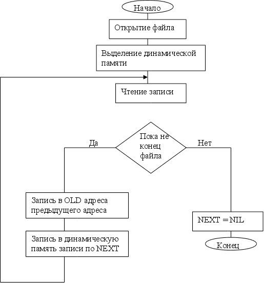 Определение значений указателей NEXT, OLD дополнительного элемента