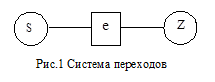 Ближайшей моделью к РВ, которой может быть промоделирован разбор цепочек, является система переходов (СП), дуги которой взвешены буквами входного алфавита. КА с выходным алфавитом Y={0,1}, распознающий язык |e|, называют конечным распознавателем (КР). Представление КР в виде диаграммы состояний (рис.1), в которой начальная вершина S и конечная вершина Z связаны дугой e называется системой переходов (СП). Здесь любая цепочка aÎ|e| переводит КА из состояния S в состояние Z [2].