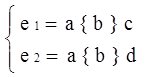 В алгебре РВ по определению Æ, l (пустая цепочка), X1 , X2 , ..., Xn являются элементарными РВ. Если e1 , e2 , e - РВ, то результаты операций e1 *e2 - (конкатенации), e1 |e2 (ИЛИ), {e} (Клини), (e) (круглые скобки) также являются РВ. Также отметим, что порождаемое множество цепочек или язык РВ e обозначают через |e|.