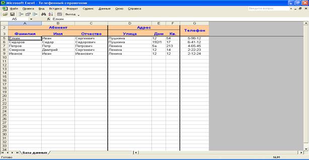 Написать программу, которая формирует базу «Телефонный справочник», содержащую следующие сведения: ФИО, адрес, телефон. Просмотр базы и обработка должна выполняться в программе Excel.