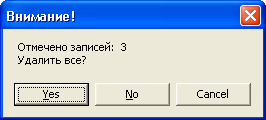 Если перед выбором режима удаления записи были отмечены несколько строк базы данных, то вместо отображения формы с удаляемой информацией будет просто предложено подтвердить удаление отмеченных записей.