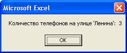 MsgBox "Количествотелефоновнаулице '" + street + "': " + Str(counter)