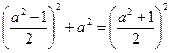Наприклад, якщо а = 3, то сторони трикутника дорівнюють 3, 4, 5; якщо а = 5, то сторони дорівнюють 5, 12, 13; якщо а = 7, то сторони будуть 7, 24, 25 тощо.