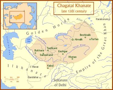 Во время малолетства Тимура произошёл распад чагатайского государства в Средней Азии (Чагатайский улус). В Мавераннахре с 1346 года власть принадлежала тюркским эмирам, и возводившиеся императором на престол ханы правили только номинально. Могульские эмиры в 1348 году возвели на престол Туглук-Тимура, который стал править в Восточном Туркестане, Кульджинском крае и Семиречье.