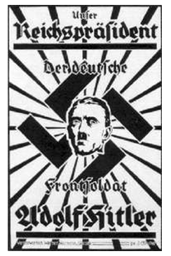 Гитлер укреплял свою власть с помощью тщательно продуманной системы жестокости и террора. Тех, кто пытался протестовать против подобного правления, избивали или убивали, арестовывали и бросали в тюрьмы. Стараясь не задевать влиятельных лиц, Гитлер хитроумно оттеснял консерваторов в сторону, в то же время грубо расставляя собственных людей в правительстве. С великолепным мастерством он проводил макиавеллевскую политику, разоряя, подвергая арестам и лишая своих противников прав и самой жизни. Он создавал послушное ему правительство, подчинял законодательство, образование и религию интересам национал-социализма. Подобно Муссолини, он стремился надзирать за соотечественниками с колыбели до могилы. "Хайль Гитлер!" - стало обязательной формой приветствия, свастика превратилась в символ нацистского государства, "Хорст Вессель" получил статус официального гимна, а хлеб и зрелища были объявлены первостепенной потребностью германской нации. Под руководством Геббельса насаждался культ поклонения фюреру. В 1934, объединив посты канцлера и президента, Гитлер стал единовластным правителем Германии.