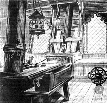 ![]() Предполагаемый внутренний вид каюты Колумба на судне "Санта-Мария" |