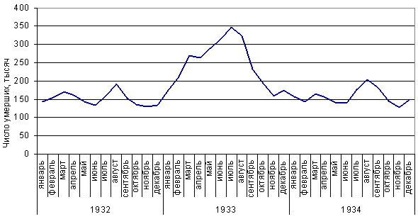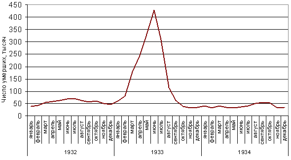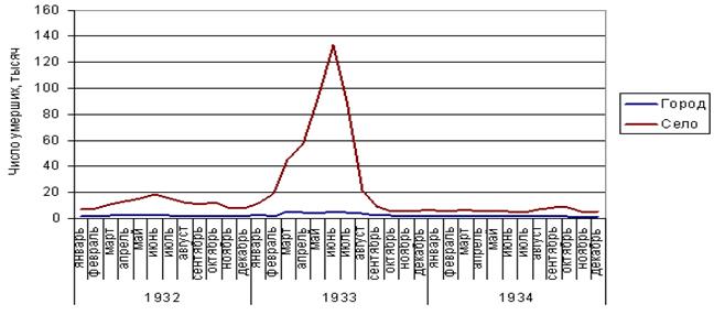 За антиукраинской направленностью и масштабностью применения, голод 33- го года оказался самым ужасным оружием массового уничтожения и социального порабощения крестьянства, которой воспользовался тоталитарный режим в Украине. Политико-правовая оценка голода 33-го года требует нетрадиционных историко-политологических методик выяснение его специфики. Ограничиться простым перечнем причин и освещением следствий голода на сегодня уже недостаточно. География смертности от голода в Украине пестрая. Менее пораженные северные районы первой половины 32- го и сплошной мор во всех областях на протяжении второй половины 32- го и первой половины 33- го лет. Голодной смертностью отличались села и районы, которые имели экономическую обусловленность, то есть упирались в объемы, сроки и методы хлебозаготовок.